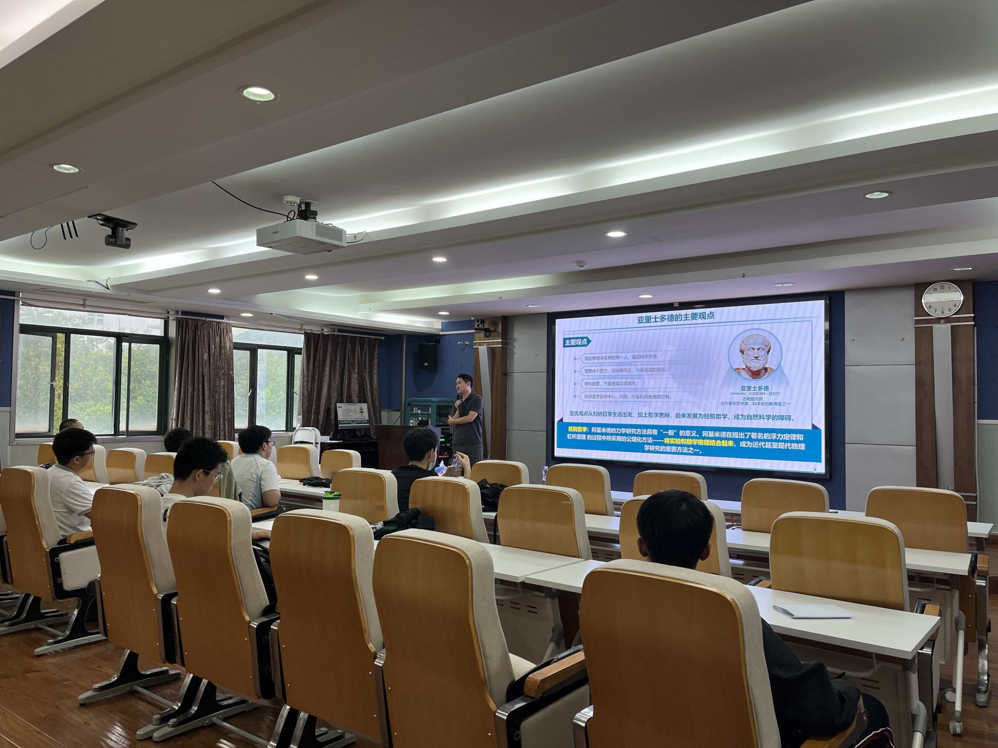 集中汇报环节结束后,施梳苏教授为全体学生作了题为《物理学的兴起与经典力学的建立》的专题讲座。讲座内容涵盖了从古希腊自然哲学思辨,到哥白尼、第谷、开普勒、伽利略等人的奠基,再到牛顿综合前人成果构建经典力学体系的波澜壮阔的科学历程,并深入剖析了这一历史进程对现代文明的深远影响。