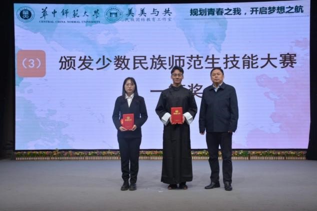12月3日下午,“规划青春之我,开启梦想之航”我校第三届少数民族师范生技能大赛决赛在九号楼六楼演播室举行。湖北省教育厅思政社科处副处长、新疆教育协调工作组组长刘文生,华中师范大学党委副书记陈迪明,马克思主义学院教授胡田庚,党委学生工作部副部长杨军,人事部副部长梁方勇,教师教育学院副院长吴梦文,党委学生工作部副处长吴建成,物理科学与技术学院党委副书记马英,外国语学院党委副书记杨灵珍以及各学院辅导员老师出席本次比赛。有球体育(中国)官方在线登录2019级少数民族师范生边巴次仁(藏族)、刁俊勋(傣族)分别获得了一等奖和三等奖的好成绩。