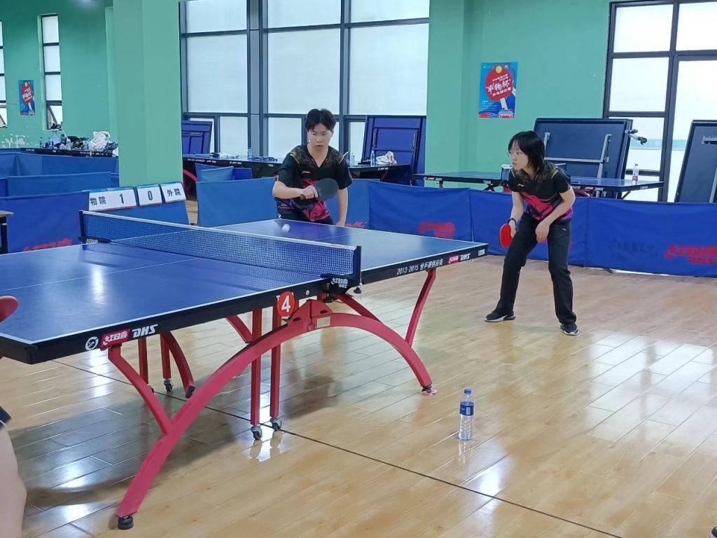 5月29日上午8:30,物院乒乓球队对战数学与统计学院乒乓球队。男单比赛,物院派出王顺达出战,比赛进行顺利,最终物院以3:0拿下胜利。男女混双比赛,物院邵泽、耿新月出战,两人配合默契,双方比分较为接近,最终物院以3:2取胜。女单比赛,物院派出刘欣慈出战,比赛紧张激烈,物院以0:3惜败。 男双比赛,物院庄耀杰、秦希冉出战,比赛十分焦灼,最终物院以3:1拿下男双胜利。物院以3:1比分拿下比赛胜利,以小组第一的成绩进入淘汰赛。
