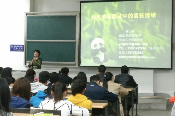 (通讯员 杨慧)4月10日晚上,由物理科学与技术学院承办的第一届“大学生生涯发展导航月”——生涯辅导讲座系列之“消除面试中的紧张情绪”讲座在九号楼9401举行,此次讲座由国家职业指导师、资深人力资源经理杨晶老师讲授。物理学院党委书记陈迪明、就业处指导教师钟文锐出席了此次讲座。