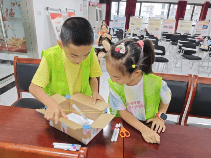 课程的最后,队员们引导孩子们制作了简易地震仪。孩子们在队员们的帮助下,使用纸箱、橡皮筋和夹子等材料,制作出能够感应震动的地震仪模型。这个活动不仅让孩子们学到了地震的相关知识,还锻炼了他们的动手能力和科学探究精神。通过亲手制作地震仪,孩子们对地震波的传播和地震仪的工作原理有了更直观的理解。