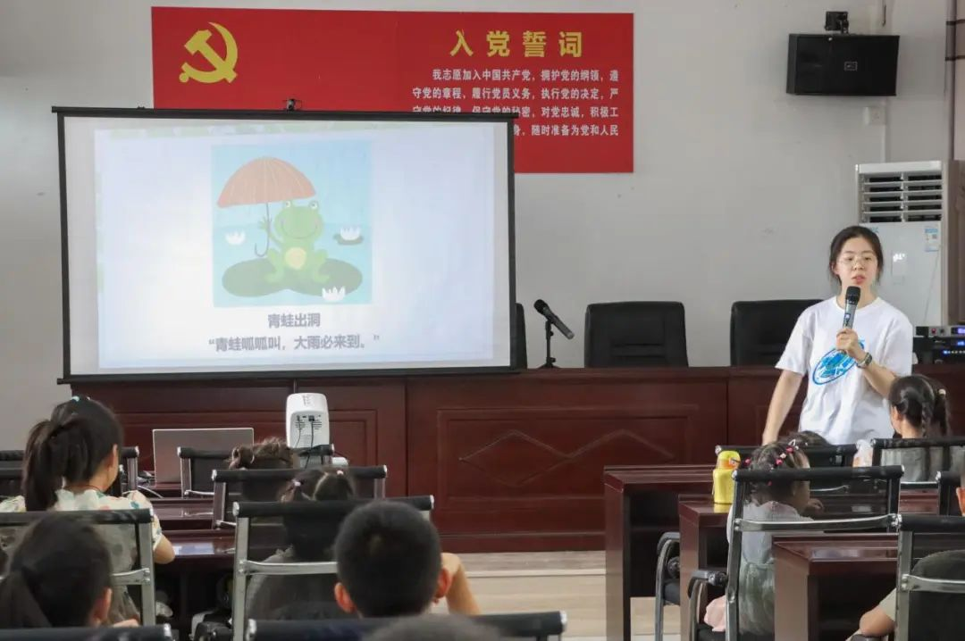7月16日,实践队队员吴晨瑜的《跟着小明过夏天》课程,巧妙地将深奥难懂的物理知识与日常切身体会到的事情联系起来,促进孩子们的理解,引起了热烈反响。孩子们跟随着小明的脚步,从品尝冰镇西瓜的甜蜜滋味,到学习游泳时佩戴泳帽的重要性,再到探讨蜻蜓低飞、闪电雷声等自然现象背后的物理奥秘。吴晨瑜通过提问、讨论和实验的方式,激发了孩子们对物理知识的浓厚兴趣。